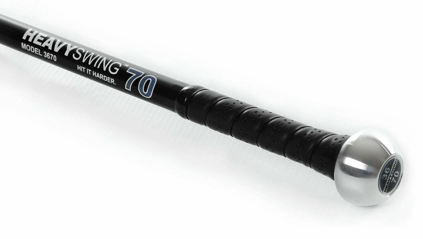 The original HeavySwing dual-weighted training product for pre-hitting stretching and swing conditioning. Promotes proper “hands inside the ball” swing mechanics.