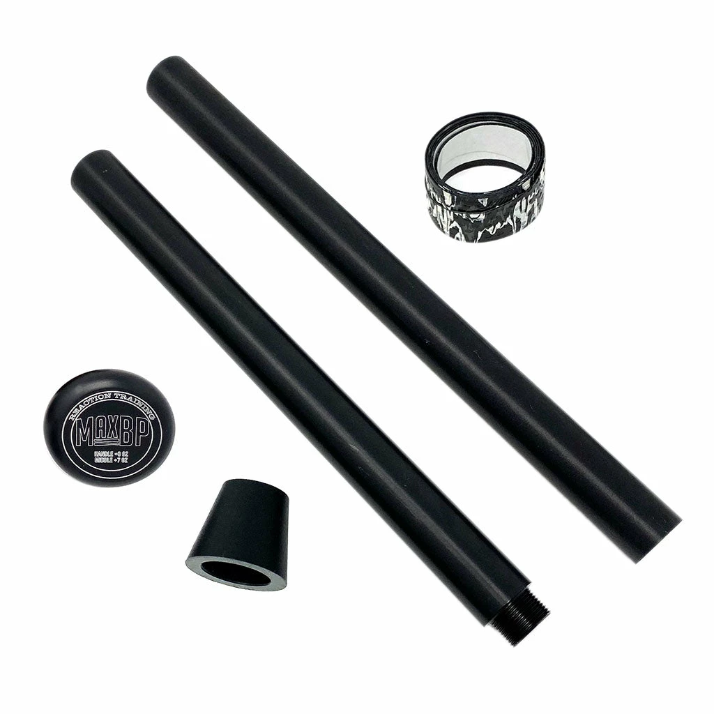 These two black pieces add weight to the handle, middle or both increasing handle-weight 8oz, middle-weight 7oz, or both for an extra 15oz. Plus, the BetterBat add-on handle comes with a Lizard Skins bat grip .Â