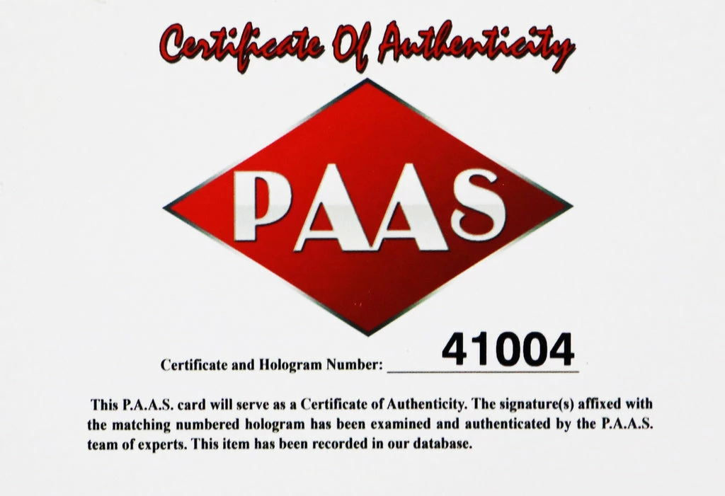 Autographed Item comes with a Certificate of Authenticity (COA) Card from PAAS Professional Autograph Authentication Services