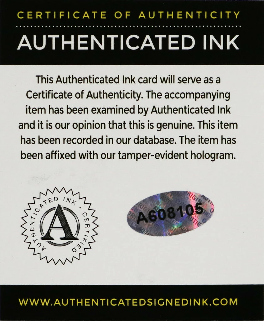 Autographed item comes with Certificate Of Authenticity (COA) Card from Authenticated InkÂ