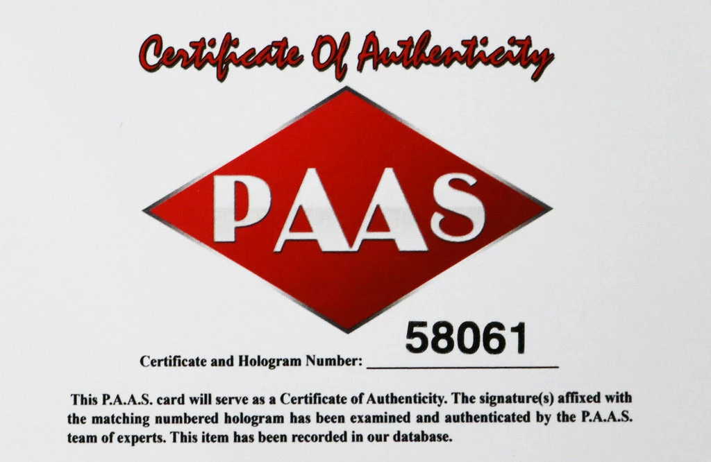Autographed item comes with Certificate Of Authenticity (COA) Card from PAAS Professional Autograph Authentication ServicesÂ