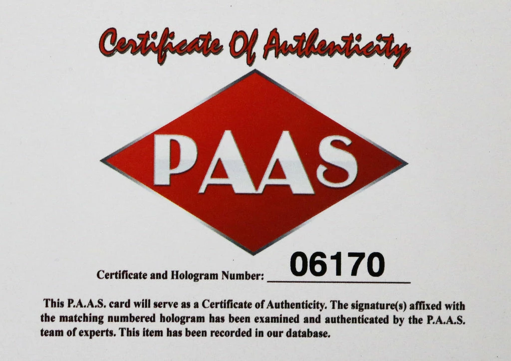Autographed item comes with Certificate Of Authenticity (COA) Card from PAAS Professional Autograph Authentication Services