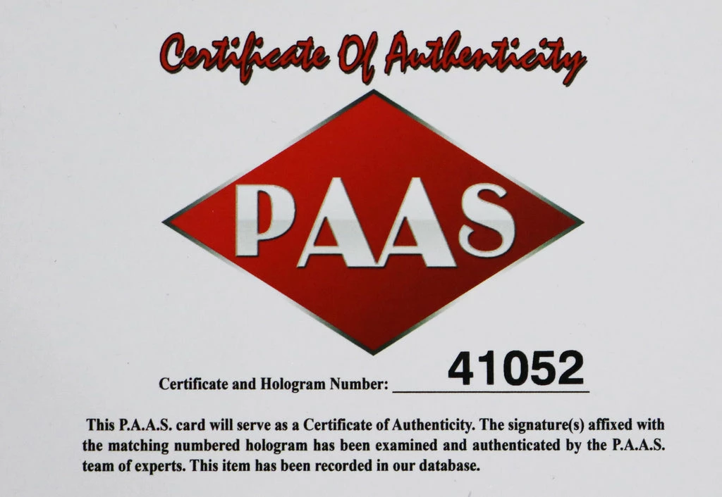 Autographed item comes with Certificate Of Authenticity (COA) Card from PAAS Professional Autograph Authentication Services
