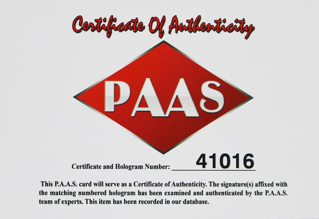 Autographed item comes with Certificate Of Authenticity (COA) Card from PAAS Professional Autograph Authentication ServicesÂ